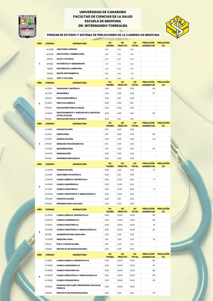 4. Pensum de estudio de la carrera de Medicina